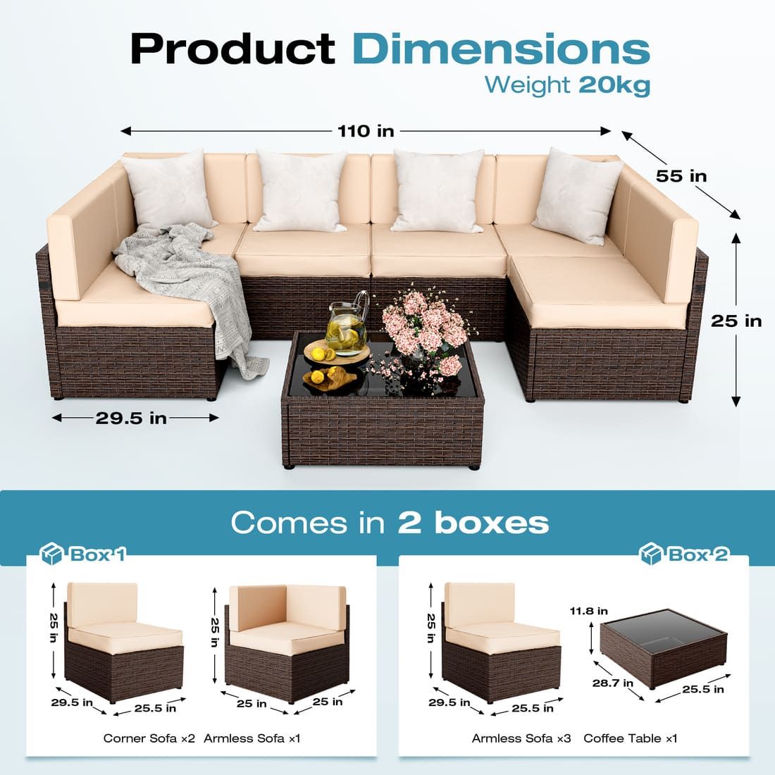 Pamapic Rattan Outdoor Sectional Couch Set (7 Pieces)